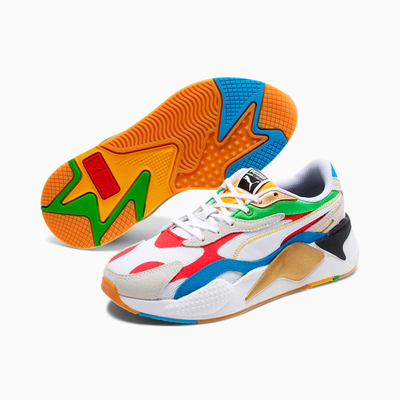 Multi-dimensional, multi-cultural and multi-generational, the latest edition of the RS-X amplifies the power of actions big and small to make a difference. The retro- future silhouette returns with layered detailing on the upper, the signature chunky midsole design and RS cushioning for extra comfort. Stitched materials represent the unity of different cultures, while vibrant colors inspired by flags around the world bring it all together.