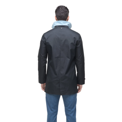 This mens jacket, short for Mackintosh or raincoat, is a wardrobe staple for the young professional looking for a classic minimalist silhouette.